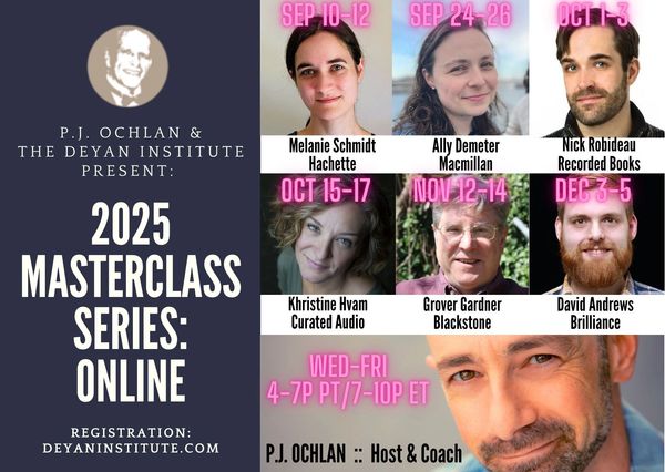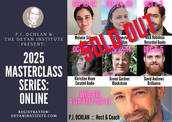 This is the online edition of P.J. Ochlan's popular Audiobook Introductory Intensive. In this course presented live online, P.J. will introduce you to all aspects of being an audiobook narrator including the business, craft, process, technique, character work, book prep, recording, and much more. Plus a limited number of attendees will have the opportunity to read with direction and feedback. If you have wanted to break into the ever-expanding business of audiobooks, this course provides all the need-to-know essentials.